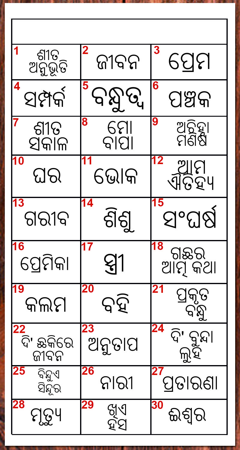 ବିଷୟ ପ୍ରକାର - କବିତା / କାହାଣୀ / କୋଟ୍
