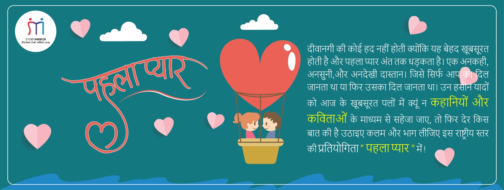 एक अनकही, अनसुनी, और अनदेखी दास्तान। जिसे सिर्फ आप का दिल जानता था या फिर उसका दिल जानता था। उन हसीन यादों को आज के खूबसूरत पलों में क्यों न कहानियों और कविताओं के माध्यम से सहेजा जाए, तो फिर देर किस बात की है उठाइए कलम और भाग लीजिए इस राष्ट्रीय स्तर की प्रतियोगिता " पहला प्यार " में !