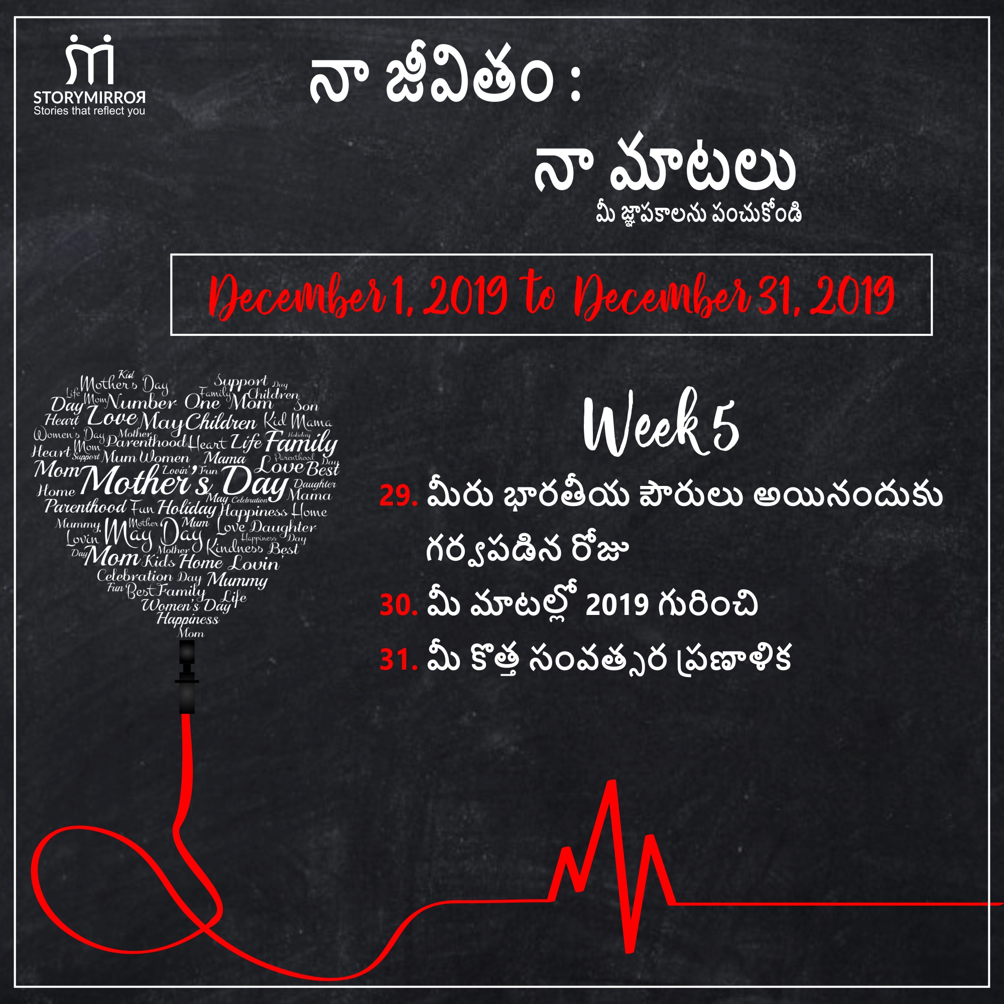 - మొత్తం అన్ని రోజులు రచనలను సబ్మిట్ చేసిన రచయితలకు స్టోరీమిర్రర్ ట్రోఫీ అందజేయబడుతుంది