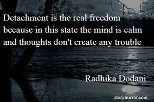 Detachment is the real freedom because in this state the mind is calm and thoughts don't create any trouble