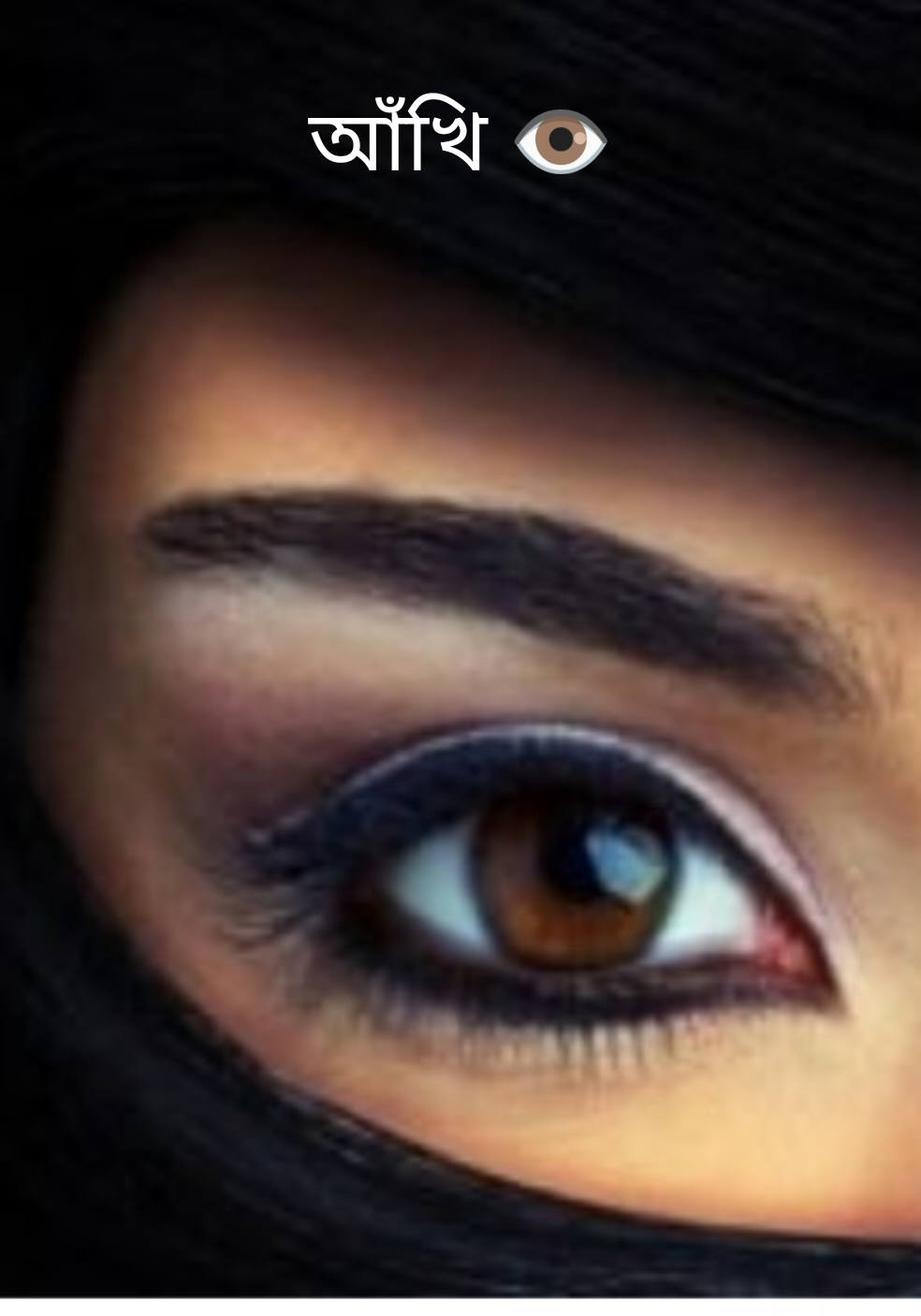 সুদীর্ঘ নেত্র পল্লব বিশিষ্ট গভীর কালো মনি যুক্ত দুটো চোখ তার উপর কালো কাজলের ছোঁয়ায় সে যেন আরও মোহময়ী। যেমন তার মায়া সেরকম তার রসানল। এত সুন্দর চোখের অধিকারিণী হওয়ায় হয়তো কেউ তার নাম রেখেছে 'আঁখি ' অবশ্য তার অন্য একটা কারণ ও আছে আজ পর্যন্ত তার মুখ কেউ দেখেনি শুধু তার চোখের গভীরতা ছাড়া। সে সব সময় তার মুখ ঢেকে রাখে কালো কাপড়ে। যে যেমন আঁখি তার কাছে ঠিক তেমনই অসহায়ের কাছে মা অন্নপূর্ণা আর দুষ্টের কাছে দেবী চণ্ডী।