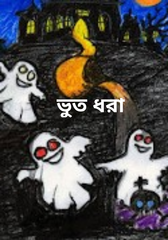 কলাগাছ কেটে। নৌকা বানিয়ে, বাঁশের কঞ্চি দিয়ে তীর ধনুক বানিয়ে, কালি পূজা র সময় বেঁচে যাওয়া চকলেট বোমা, কালি পটকা নিয়ে, চললাম ভুত তারানোর অভিযানে। নৌকা বেয়ে যখন দিঘির মাঝামাঝি এলাম। তখন আমাদের নৌকা দুই চারটে পাকা আম ছুঁড়ে মারলো। আমি খুবই ভয় পেয়ে গেছিলাম। কিন্তু হ্যালা বাপি কোন কিছু চিন্তা ভাবনা না করে । আমটায় যেই কাঁমড় বসিয়েছে সেই একটা কান্ড ঘটে গেলো। কোথা থেকে একটা রোগা পটকা বামুন ঠাকুর আমাদের নৌকাতে হাজির হলো।