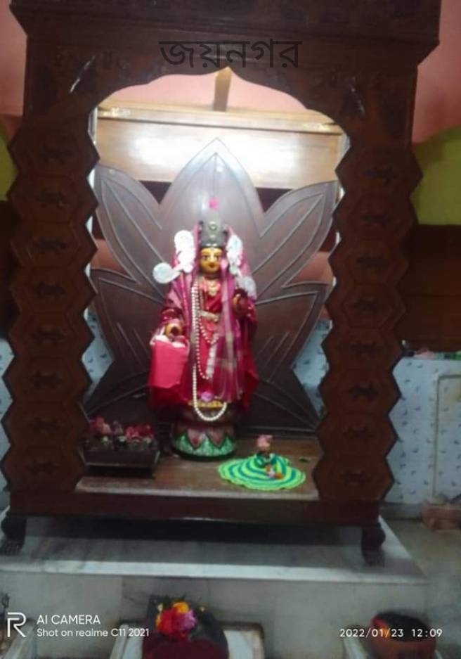 দেবীর বর্তমান দক্ষিণমুখী মন্দিরটি ১৯৫০ সালে কলকাতার মহেন্দ্র শ্রীমানি নির্মাণ করেন।আর নাটমন্দিরটি নির্মাণ করেন নিত্যহরি মতিলাল। গর্ভমন্দিরে একটি সিমেন্টের বেদিতে কাঠের মঞ্চের উপর বকুল গাছের নির্মিত আড়াই ফুট উঁচু শাড়ি পরিহিত দেবীর দারুবিগ্রহ আজও আছেন জয়নগর বাসীদের মা ।গৌরবর্ণের ত্রিনয়নী দেবীর হাতদুটি অলঙ্কার শোভিত। অভয় ও বরাভয় মুদ্রায় রতা,মাথায় মুকুট কিশোরী মেয়েমতো দাড়িয়ে আছে। । দেবীর আর একটি স্বপ্নাদেশে প্রাপ্ত ওই দিব্য শিলাখণ্ডটিও ওই এই অপরুপ দারুবিগ্রহের নিত্যসেবিত হয়।।