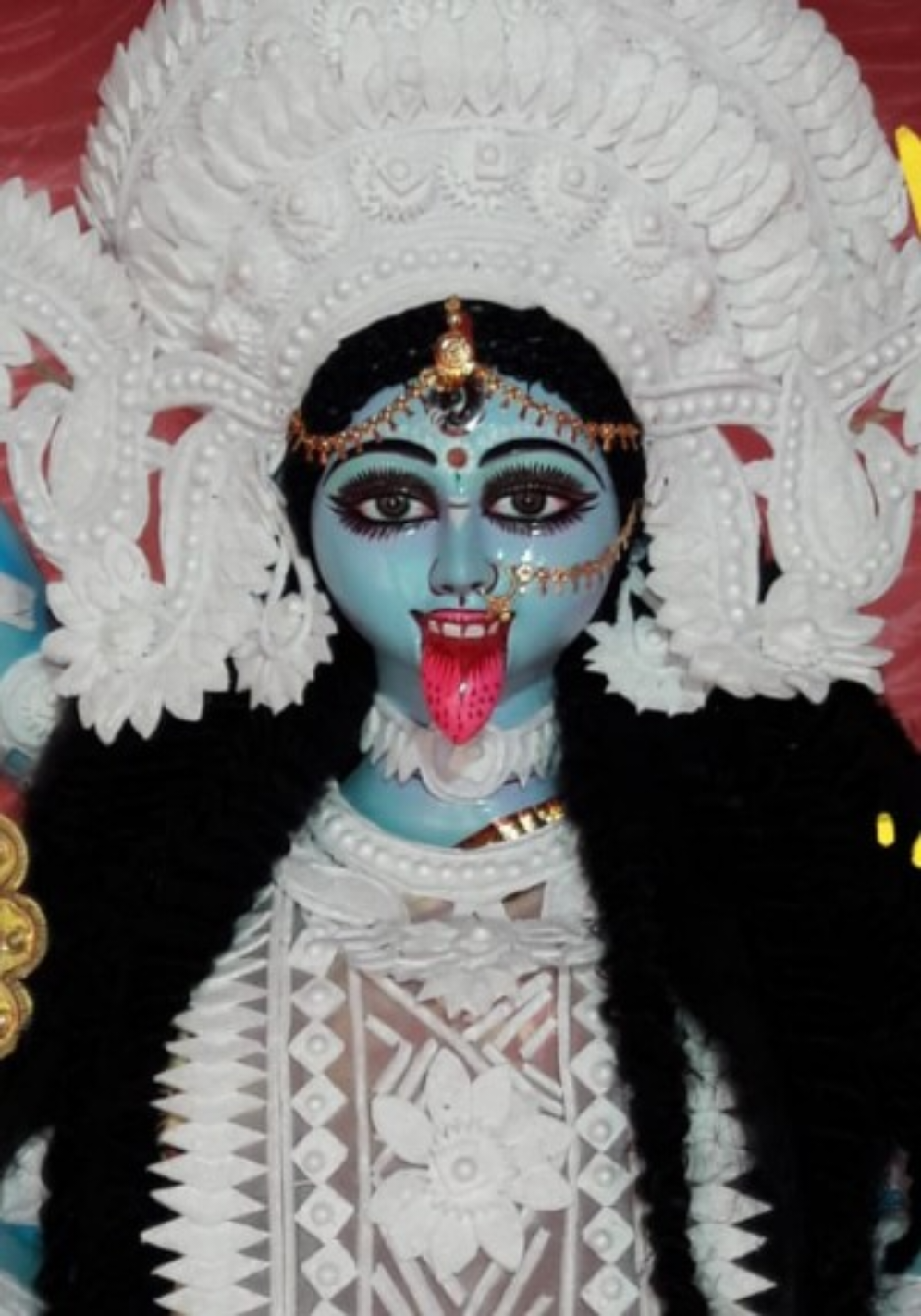 - "হ্যাঁ নিশ্চয়ই," ম্যানেজার বাবু একটু ভেবে বললেন, "সামনের চৌরাস্তা থেকে বাঁ দিকে ঘুরে অল্প এগোলেই মা শ্মশানকালীর জাগ্রত মন্দির আছে। ঘুরে আসুন....দেখবেন ভাল লাগবে।"