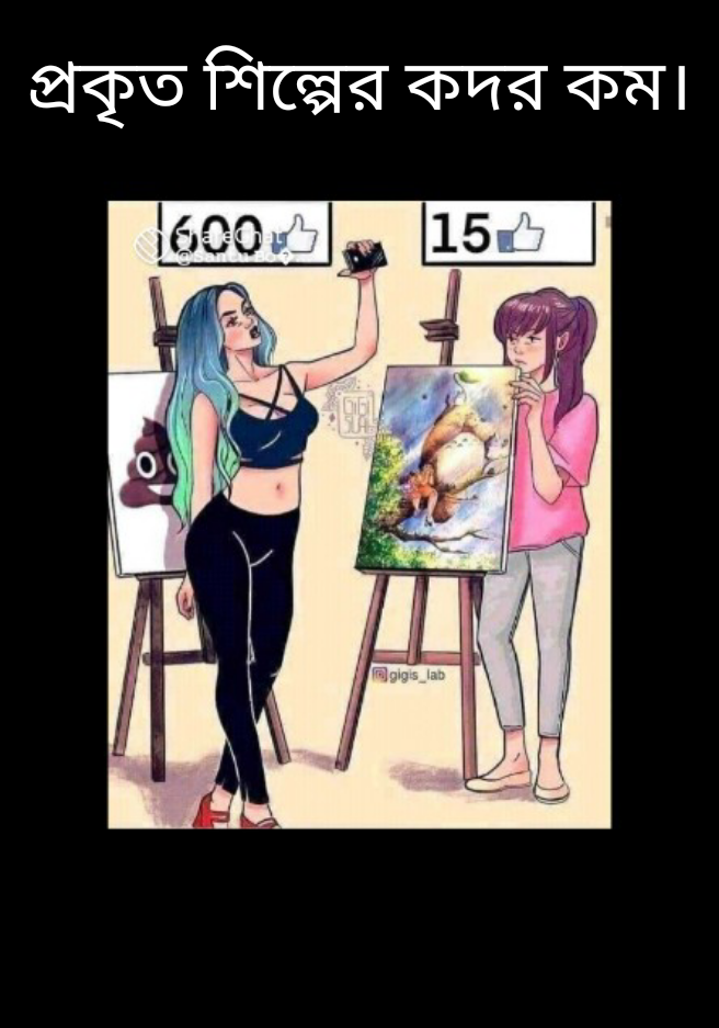 পায় না অনেকেই তাদের প্রকৃত শিল্পের কদর। বিচার হয় বিশ্লেষণের মাধ্যমে নয়, দর্শনের মাধ্যমে। যেটা উপর উপর দেখতে ভালো সেটাই শ্রেষ্ঠ। অন্তর্নিহিত দৃষ্টিক্ষমতা এখন আর নেই কারোর , তাই প্রকৃত মানুষের যেমন কদর কম তেমনই প্রকৃত শিল্পের শিল্পেরও কদর কম!
