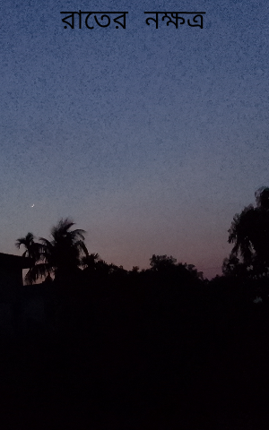 সময়টা বসন্ত কাল বাতাসে হালকা আবির এবং পলাশ ফুলে গন্ধ সব মিলিয়ে | পরিবেশটা বেশ মনোরম, সকালে অবশ্য হালকা রোদ ছিল কিন্তু সন্ধে নামতেই একটা আলাদাই পরিবেশ তৈরী হলো। আকাশে এক ফালি চাঁদ আর তার চারপাশে অগুনতি নক্ষত্রের ভিড়। শুধুমাত্র খোলা ছাদের উপর আরামকেদারায় বসে একভাবে আকাশের দিকে তাকালেই মনে হয় কোটি কোটি নক্ষত্রের মধ্যে আবছা ভাবে নিজের প্রতিচ্ছবি আঁকা। সময় বাড়তে থাকে ঘড়িতে তখন রাত্রি ৮টা ১৫ হবে, কখন যে আকাশের নক্ষত্রের দিকে তাকিয়ে এত সময় পেরিয়ে গেছে সেটা খেয়ালই হয়নি। তখন হালকা হাওয়া দিচ্ছে হালকা ঠান্ডাও লাগছে, ২৩টা সিঁড়ি গুনে গুনে ছাদ থেকে নেমে নিচের ব্যালকোনিতে এসে বসা মানুষটি দেখতে থাকে বাড়ির সামনের রাস্তা, রাস্তাটা আজকে আজকে একটু ফাঁকা ফাঁকা লাগছে। হালকা হাওয়া আর সাথে ইজি চেয়ার-ই গা হেলিয়ে বসে থাকা অনুভূতিটা একটু অন্যরকম। রাস্তার দিকে চেয়ে থাকা মানুষটির চোখ যায় রাস্তার শেষ প্রান্তে, দেখতে পায় সাদা উজ্জ্বল একটি বিন্দু যেটা | ক্রমশ সামনের দিকে এগিয়ে আসছে, নিজের মনেই বিড়বিড় করে বলে ওঠে "নক্ষত্র"! কিছুটা সামনে আসতে দৃষ্টি পরিষ্কার হয় দেখতে পায় সাদা রঙের পোশাক পরিহিত বছর ২৫-র একটি মেয়ে তার গা থেকে দুধের মতো সাদা রং বেরিয়ে আসছে। ব্যালকোনিতে বসে থাকা মানুষটি মুগ্ধ হয়ে চেয়ে থাকে তার দিকে, চোখ যায় মেয়েটির পায়ের দিকে,তার পায়ে রুপোর নুপুর চকচক করছে, রুমঝুম শব্দের সাথে ধীরে ধীরে এগিয়ে আসছে মেয়েটি। সে যেন রাত্রের আকাশের নক্ষত্রের সাথে সেই মেয়েটির এক অদ্ভুত মিল খুজে পায়, যেন আকাশের নক্ষত্ররা তাকে সৃষ্টি করে পাঠিয়েছে। এসব ভাবতে ভাবতে দেখতে পায় মেয়েটি সামনের রাস্তা দিয়ে ক্রমশ মিলিয়ে যাচ্ছে ঠিক যেন উজ্জ্বল একটি নক্ষত্র গতিপথ অতিক্রম করে এগিয়ে চলছে। হটাৎ ঘন্টার শব্দে চোখটা খুলে যায় শুনতে পায় পাশের ঘড়ির টাওয়ারে রাত ১০টা বাজছে। নিজের অজান্তেই মুখ দিয়ে একটি শব্দ উচ্চারিত হয় "নক্ষত্র"!
