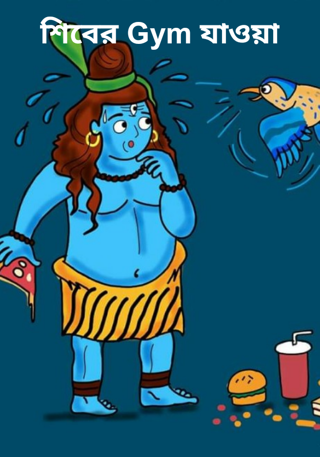 গনেশ টা কাজের ব্যস্ততার অজুহাতে তেমন gym যায় না। তবে শিবের থেকে সে সিরিয়াস। ছুটির দিন গুলোতে কাউকে বলতে হয়না ও gym গিয়ে ঘন্টাখানিক ঘাম ঝড়িয়ে আসে। কিন্তু শিবে বিপদ সারাজীবন তো চাকুরী বাকুরি করলো না। এখনতো বয়েস হয়েছে যে চাকুরী খোঁজার অজুহাতে এখানে ওখানে ঘোরাঘুরি করবে সেটার উপায় নেই। সুগার নেই তবু সকাল বেলায় উচ্ছের রস খেয়ে তাকে gym যেতে হয়। জলখাবার গরু ছাগলের মতো ঘাস পাতা খেতে হয়। যাকে তোমরা সেলাভ বলো। পেটুক শিবের জীবনটা অতিষ্ঠ করে দিয়েছে স্বাস্থ্য সচেতন ডাইড চার্ট। চব্য চস্য দূরে থাক সিদ্ধ খাবারে কাঁচা নুনুটা নিতে দেয় না দূর্গা ঠাকুর।। আচ্ছা না খেলে সু স্বাস্থ্যের অধিকারী হবেন কোন যুক্তিতে সেটা একটু আপনার বলতে পারবেন?
