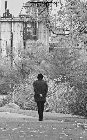 কন্ডাক্টর আমাকে আবার জিজ্ঞেস করল, ”কি মিয়া,নামবেন না?” আমি জবাব দিলাম না। মেয়ে দুটোর দিকে তাকালাম আবার। আমি যদি এখন নেমে যাই, তাহলে মেয়ে দুটির কপালে কি দূর্দশা নেমে আসতে পারে,তা ভেবে শিউরে উঠলাম। আবার ভাবলাম,এও তো হতে পারে আমি যা ভাবছি তা অবান্তর কল্পনা ছাড়া আর কিছু নয়। কিন্তু ভাগ্য তাদের দানে কি চেলে রেখেছে তা কেউ জানে না। জানালার ঘোলা কাচের ভেতর দেখা যাচ্ছে নিজেকে।বৃষ্টিভেজা নীল কাচ গড়িয়ে পড়ছে জল-তার মধ্যে আমি,অসহায়,ক্লান্ত মুখ,চোখের দৃষ্টি বহুদিন আগেই হারিয়েছে বিশ্বাস।ভেজা জানালা আজ আয়না হয়ে দাড়িয়েছে সামনে-পরাজিত এক জনকে দেখা যায়।ঠিক করলাম মেয়ে দুটো নিরাপদে গাড়ি থেকে না নামা পর্যন্ত আমিও নামবো না।