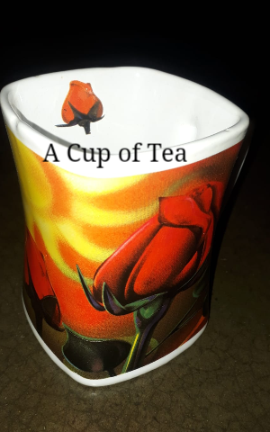 A passionate love story with a kiss over a cup of tea. I hide in a cup of tea even though it's the ocean because you can't see it.