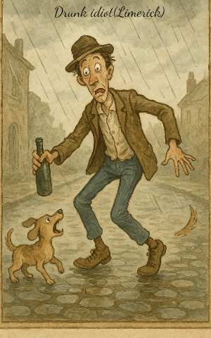 Rain pattered, drunk idiot finally drowned
