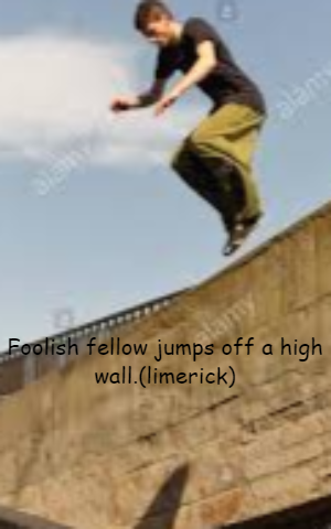 A fellow jumped off a high wall,
