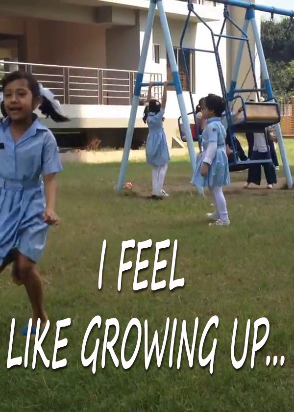 I feel like growing up once more, in the playground of happiness, to dance in the rain of joy.
