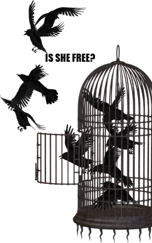 As a prisoner then locked up in this cage, why is she?