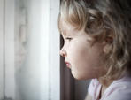 A little girl walks on the road,