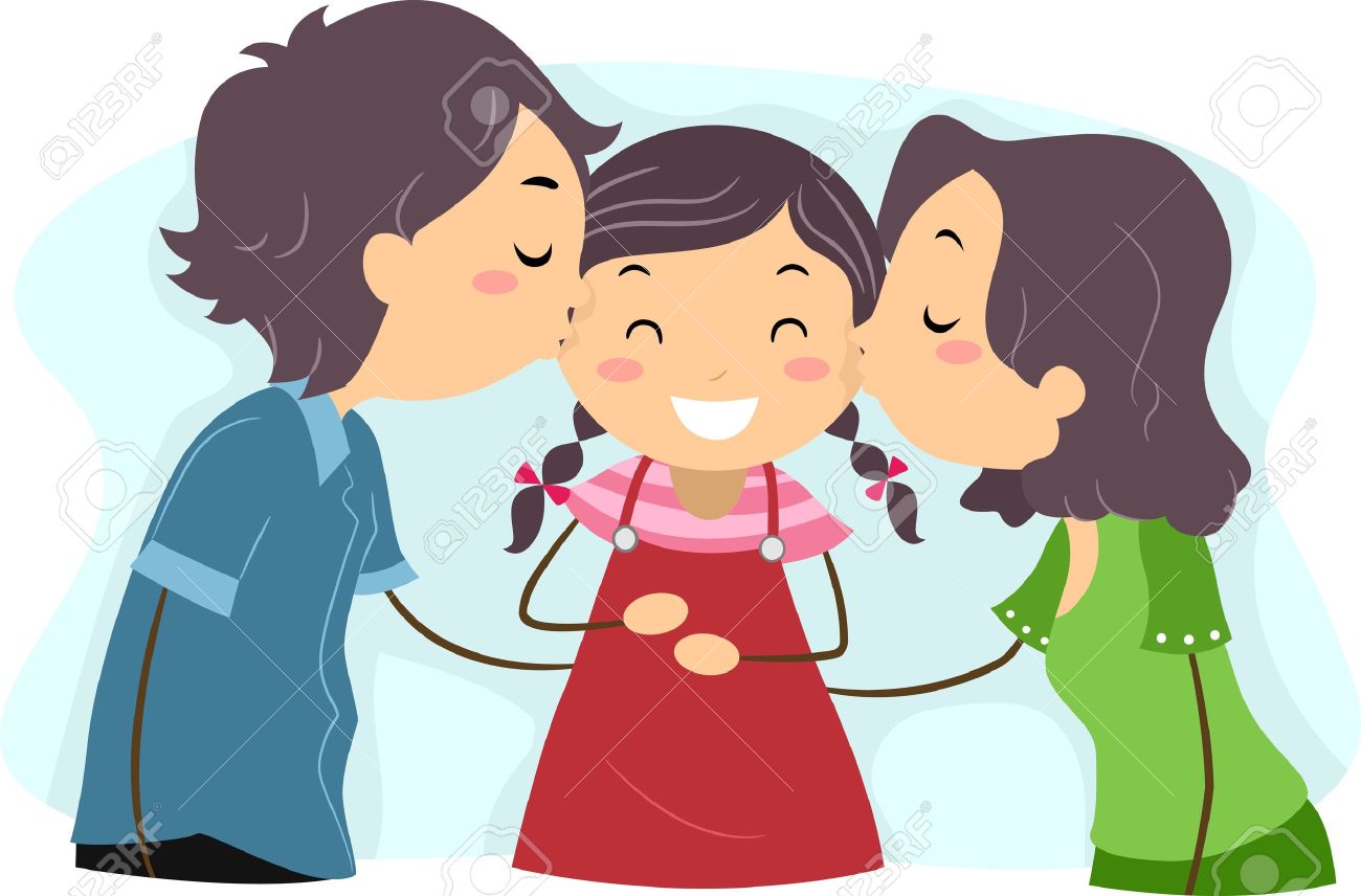 When the little daughter gives a kiss and shares her chocolate to make her mom happy