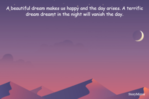 A beautiful dream makes us happy and the day arises. A terrific dream dreamt in the night will vanish the day.
