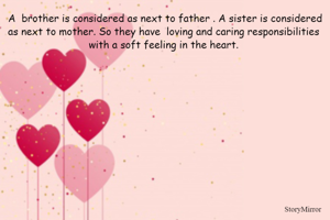 A brother is considered as next to father . A sister is considered as next to mother. So they have loving and caring responsibilities with a soft feeling in the heart.