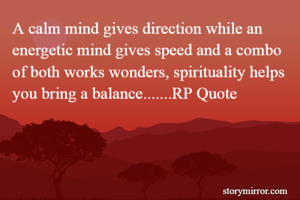 A calm mind gives direction while an energetic mind gives speed and a combo of both works wonders, spirituality helps you bring a balance.......RP Quote