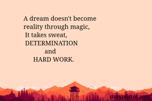 A dream doesn't become reality through magic, It takes sweat, DETERMINATION and HARD WORK.