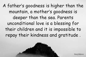 A father’s goodness is higher than the mountain, a mother’s goodness is deeper than the sea. Parents unconditional love is a blessing for their children and it is impossible to repay their kindness and gratitude .