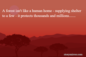 A forest isn't like a human home - supplying shelter to a few - it protects thousands and millions.......