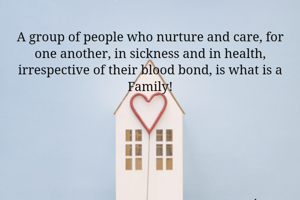 A group of people who nurture and care, for one another, in sickness and in health, irrespective of their blood bond, is what is a Family!
