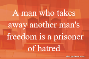 A man who takes away another man's freedom is a prisoner of hatred