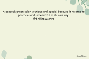 A peacock green color is unique and special because it relates to peacocks and is beautiful in its own way. @Shikha Mishra