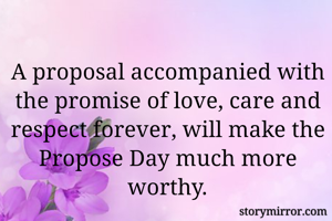 A proposal accompanied with the promise of love, care and respect forever, will make the Propose Day much more worthy.