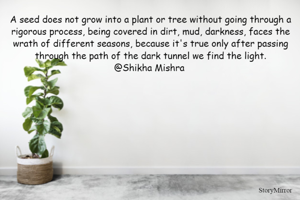A seed does not grow into a plant or tree without going through a rigorous process, being covered in dirt, mud, darkness, faces the wrath of different seasons, because it's true only after passing through the path of the dark tunnel we find the light.