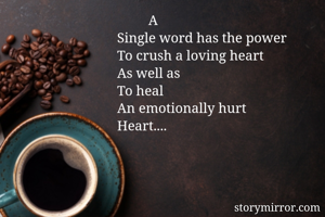 A Single word has the power To crush a loving heart As well as To heal An emotionally hurt Heart....