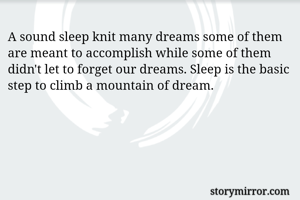 A sound sleep knit many dreams some of them are meant to accomplish while some of them didn't let to forget our dreams. Sleep is the basic step to climb a mountain of dream.