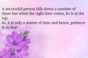 A successful person falls down a number of times but when the right time comes, he is at the top. So, it is only a matter of time and hence, patience is its key!
