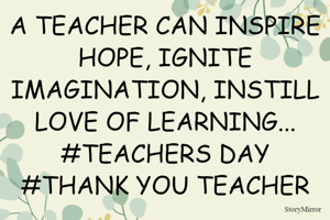 A TEACHER CAN INSPIRE HOPE, IGNITE IMAGINATION, INSTILL LOVE OF LEARNING... #TEACHERS DAY #THANK YOU TEACHER
