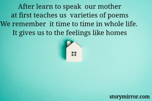 After learn to speak our mother at first teaches us varieties of poems We remember it time to time in whole life. It gives us to the feelings like homes
