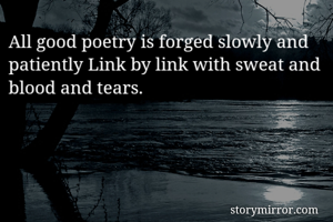 All good poetry is forged slowly and patiently Link by link with sweat and blood and tears.