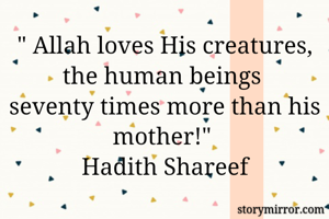 " Allah loves His creatures, the human beings seventy times more than his mother!" Hadith Shareef