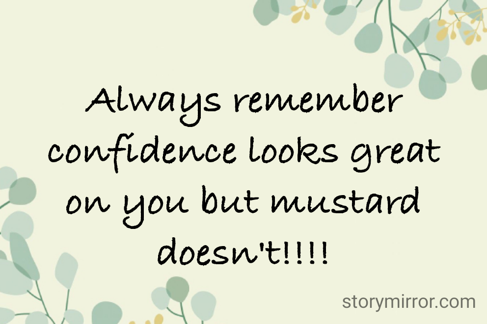 Always remember confidence looks great on you but mustard doesn't!!!!