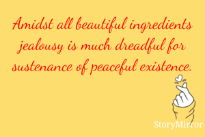 Amidst all beautiful ingredients jealousy is much dreadful for sustenance of peaceful existence.
