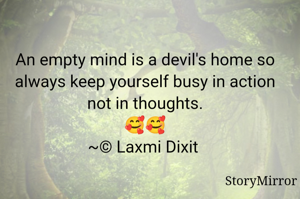 An empty mind is a devil's home so always keep yourself busy in action not in thoughts. 🥰🥰 ~© Laxmi Dixit