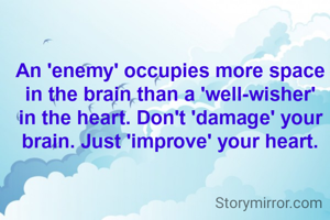 An 'enemy' occupies more space in the brain than a 'well-wisher' in the heart. Don't 'damage' your brain. Just 'improve' your heart.