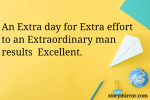 An Extra day for Extra effort to an Extraordinary man results Excellent.