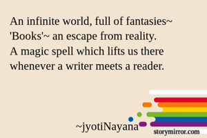 An infinite world, full of fantasies~ 'Books'~ an escape from reality. A magic spell which lifts us there whenever a writer meets a reader. ~jyotiNayana