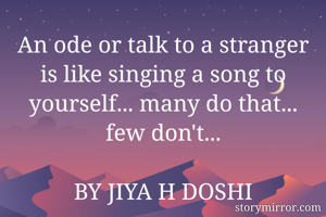 An ode or talk to a stranger is like singing a song to yourself... many do that... few don't...