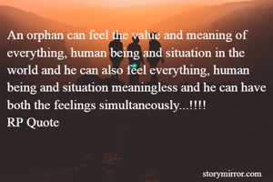 An orphan can feel the value and meaning of everything, human being and situation in the world and he can also feel everything, human being and situation meaningless and he can have both the feelings simultaneously...!!!! RP Quote