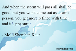 And when the storm will pass all shall be good, but you won't come out as a same person, you get more refined with time and it’s pressure - Molli Sherchan Kaur