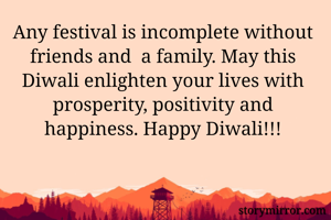 Any festival is incomplete without friends and a family. May this Diwali enlighten your lives with prosperity, positivity and happiness. Happy Diwali!!!