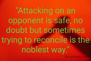 "Attacking on an opponent is safe, no doubt but sometimes trying to reconcile is the noblest way."