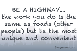 BE A HIGHWAY.... the work you do is the same as roads (other people) but be the most unique and convenient