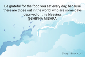 Be grateful for the food you eat every day, because there are those out in the world, who are some days deprived of this blessing.